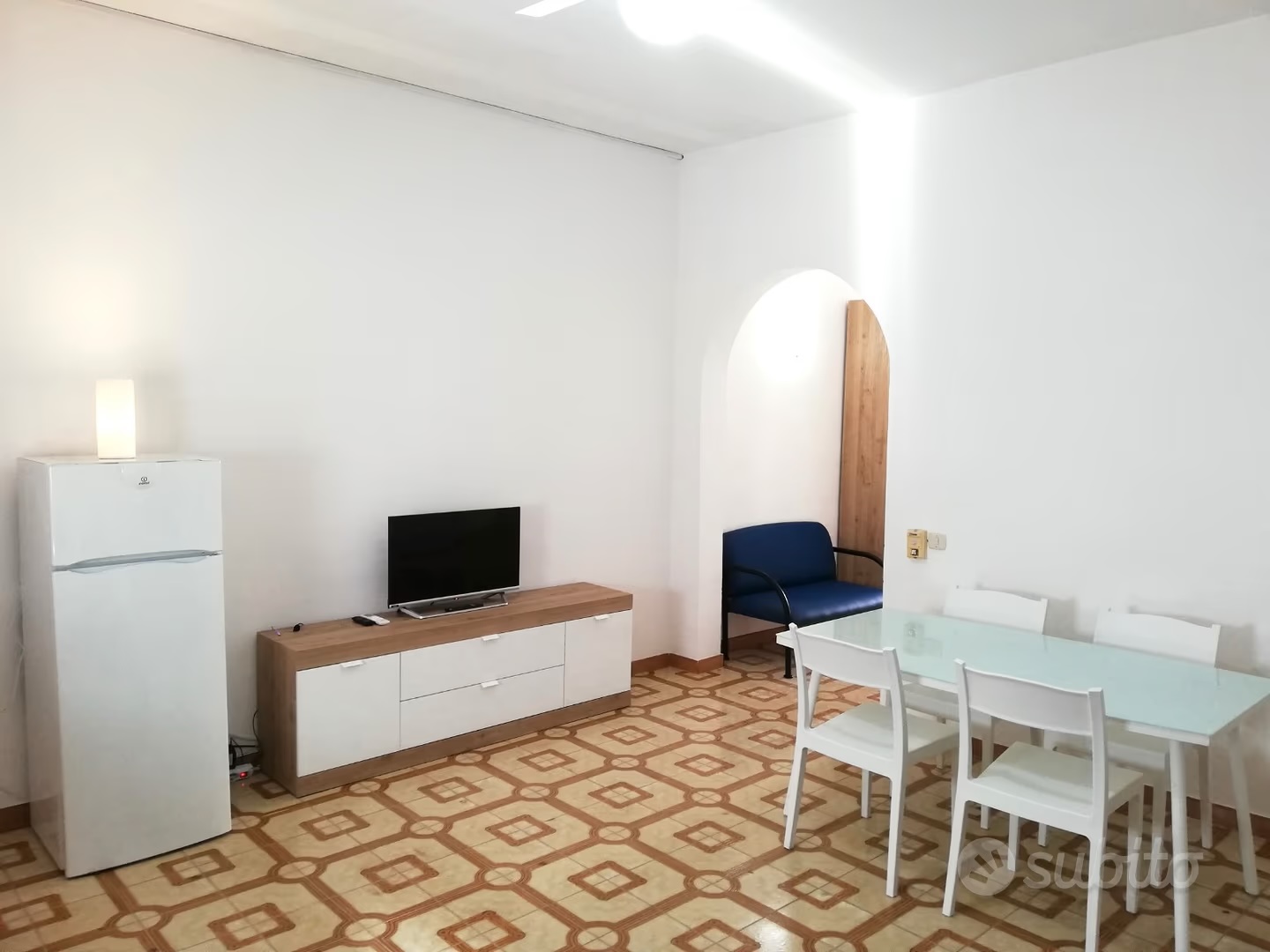 L’immobile comprende ingresso, ampia zona giorno cucina/soggiorno, una camera da letto con letto matrimoniale piu’ letto a castello, bagno, veranda e cortile. Aria condizionata nella zona giorno ed in camera, lavatrice, TV e zanzariere a tutte le finestre.
