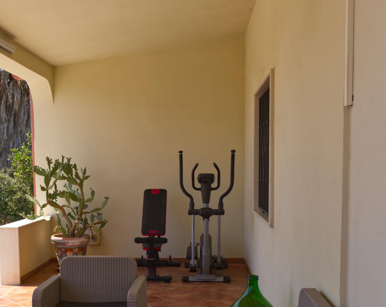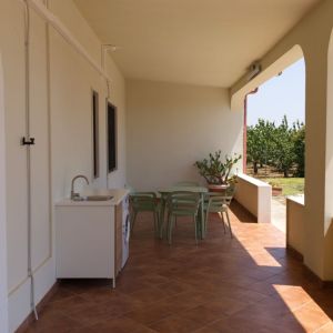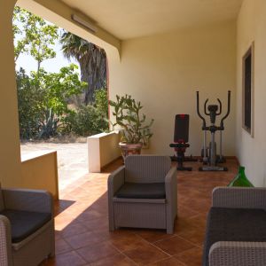 • Veranda ampia ed esclusiva, attrezzata con barbecue, divanetti, tavolo e sedie, zona lavanderia con lavabo e lavatrice.